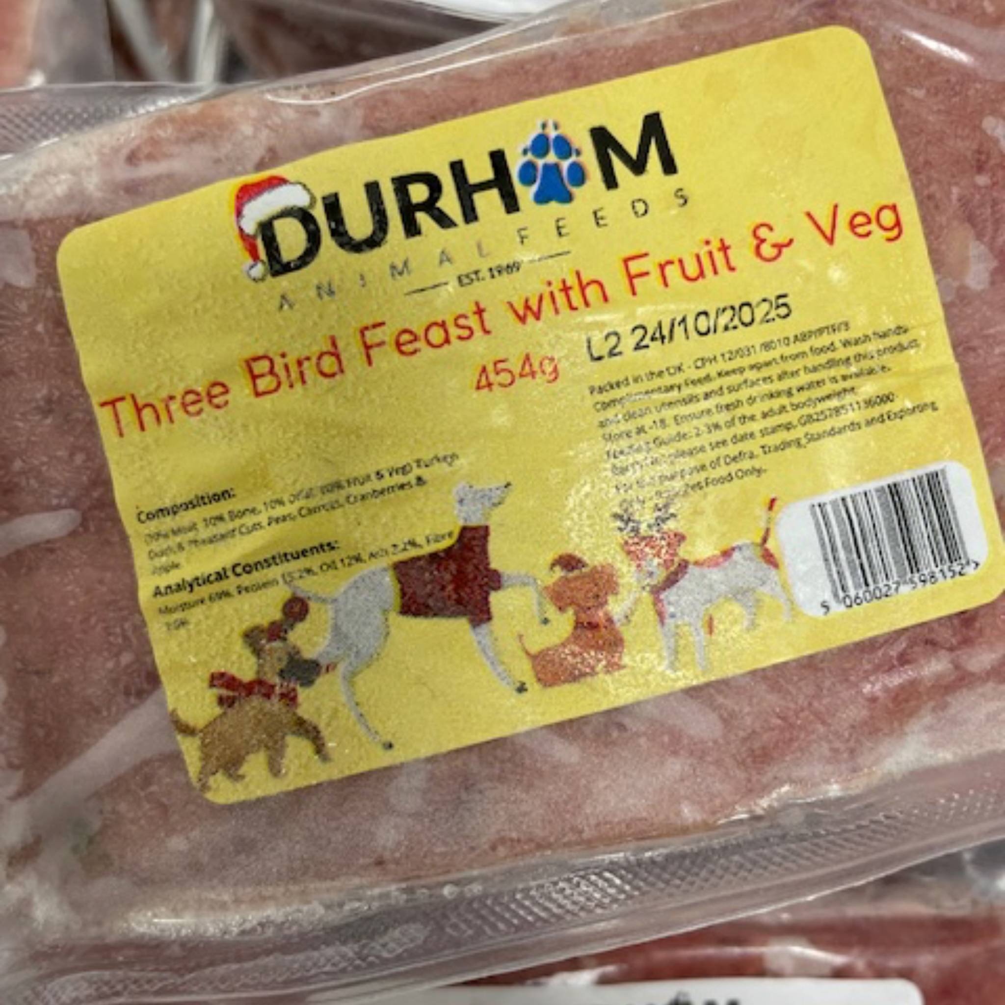 Turkey, Duck & Pheasant Cuts, Peas, Carrots, Cranberries & Apple (70% Meat, 10% Bone, 10% Offal, 10% Fruit & Veg)
