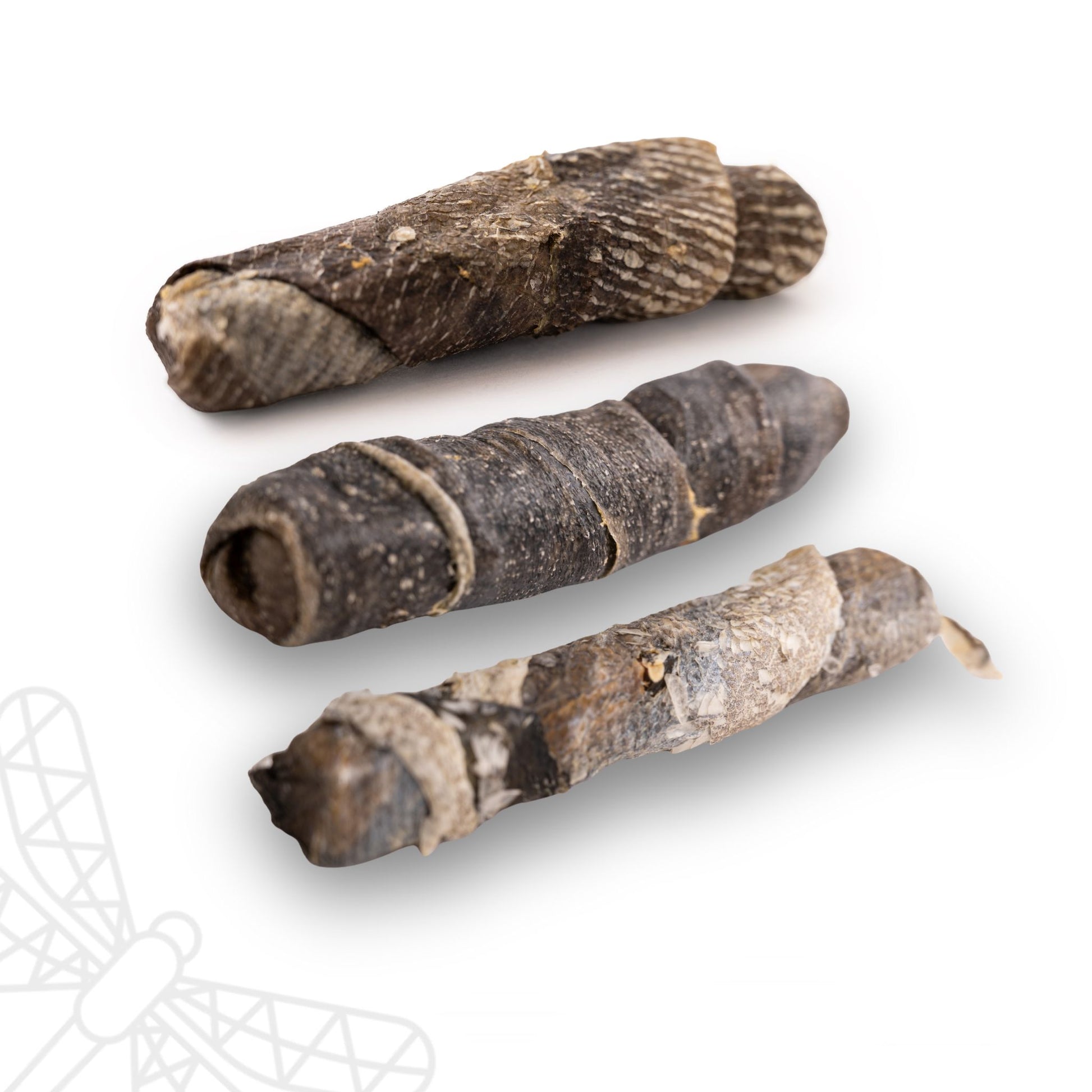 Each stick is incredibly dense, made from 100% fish skin and dried fish meat thatâs been formed into a heavy throw stick â designed especially for the tough chewers. Available in Wolf Fish, Cod, and Salmon, these chunky chews are a brilliant way to keep your dog occupied while supporting their health inside and out.
