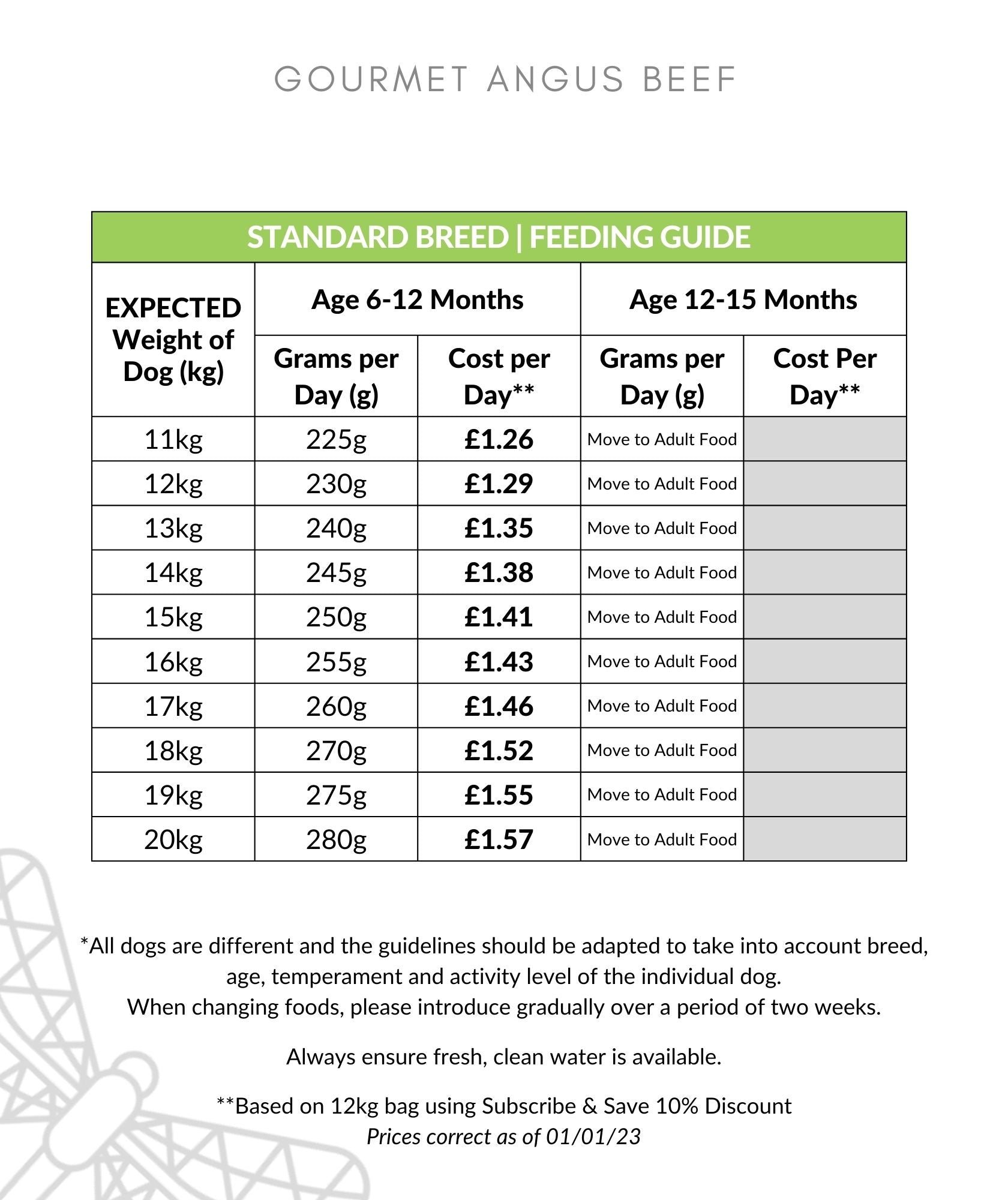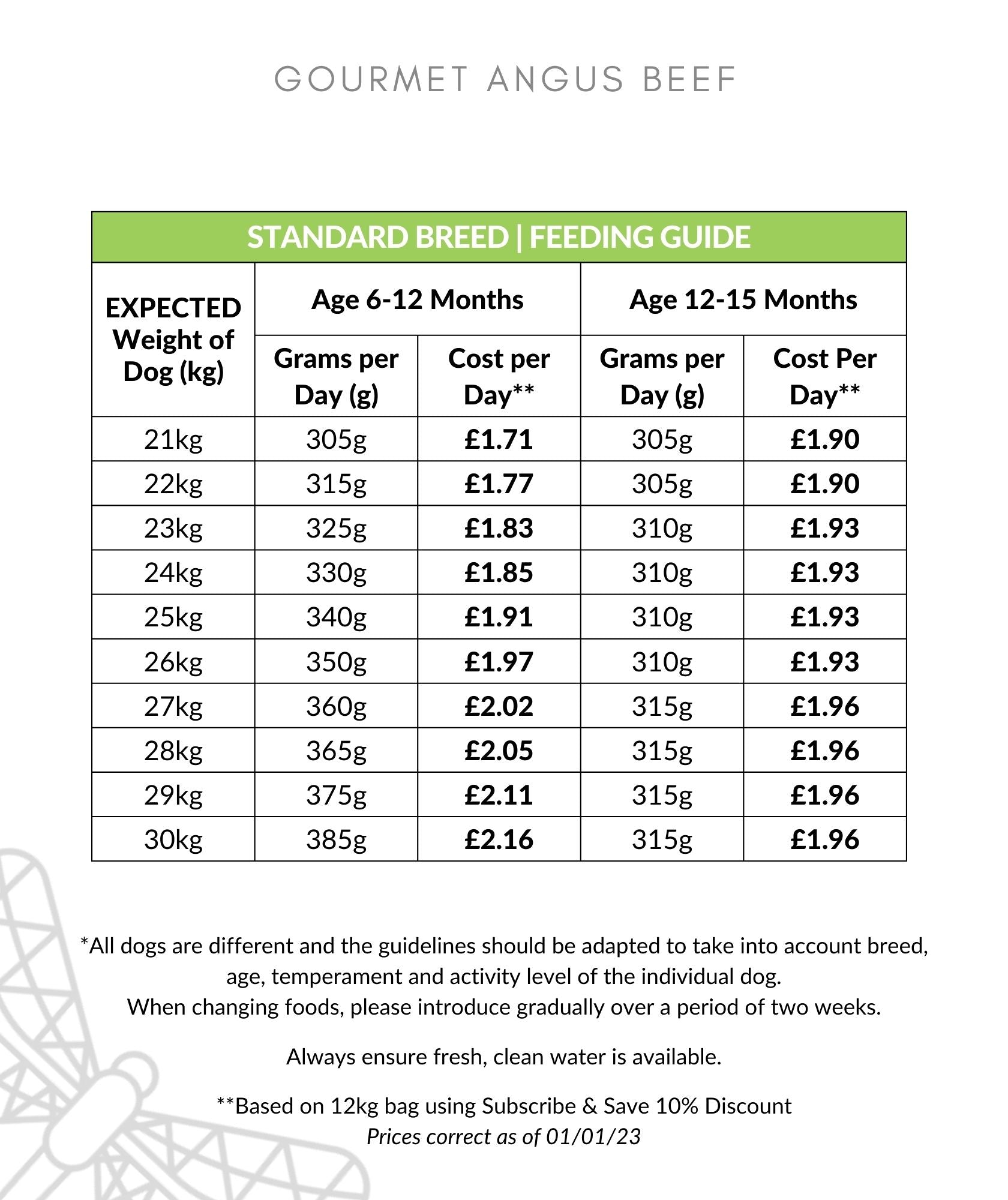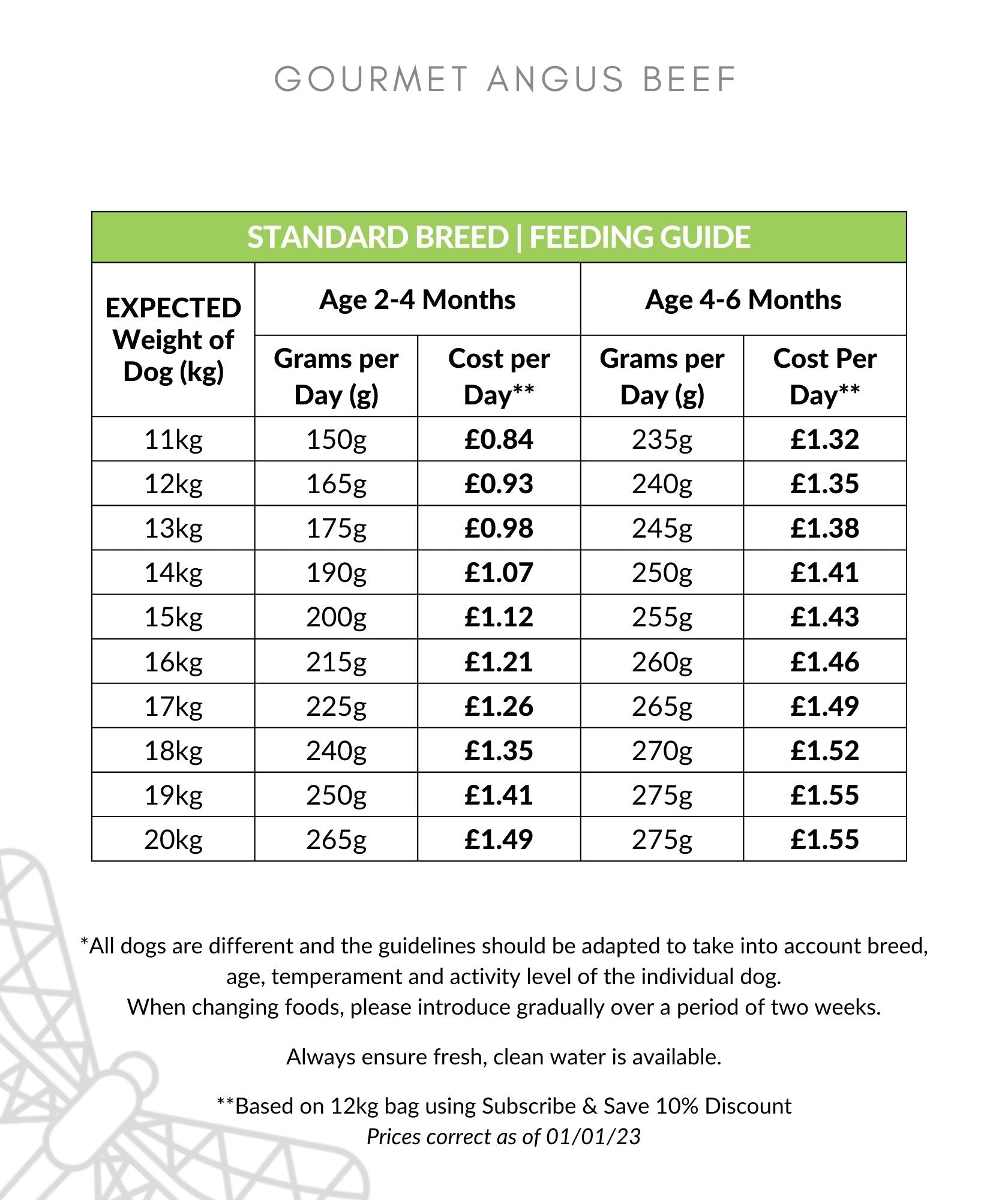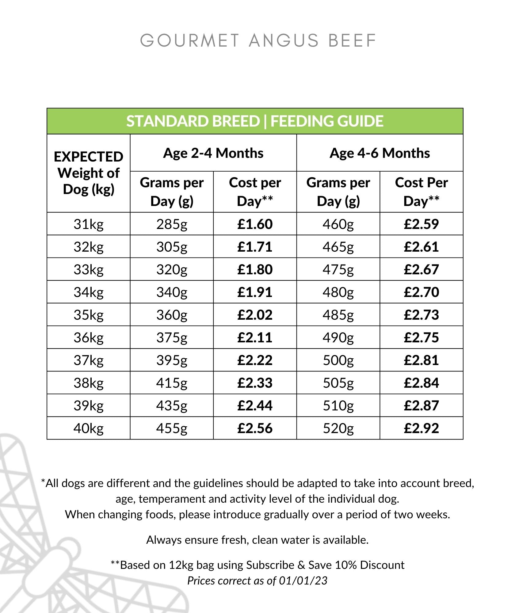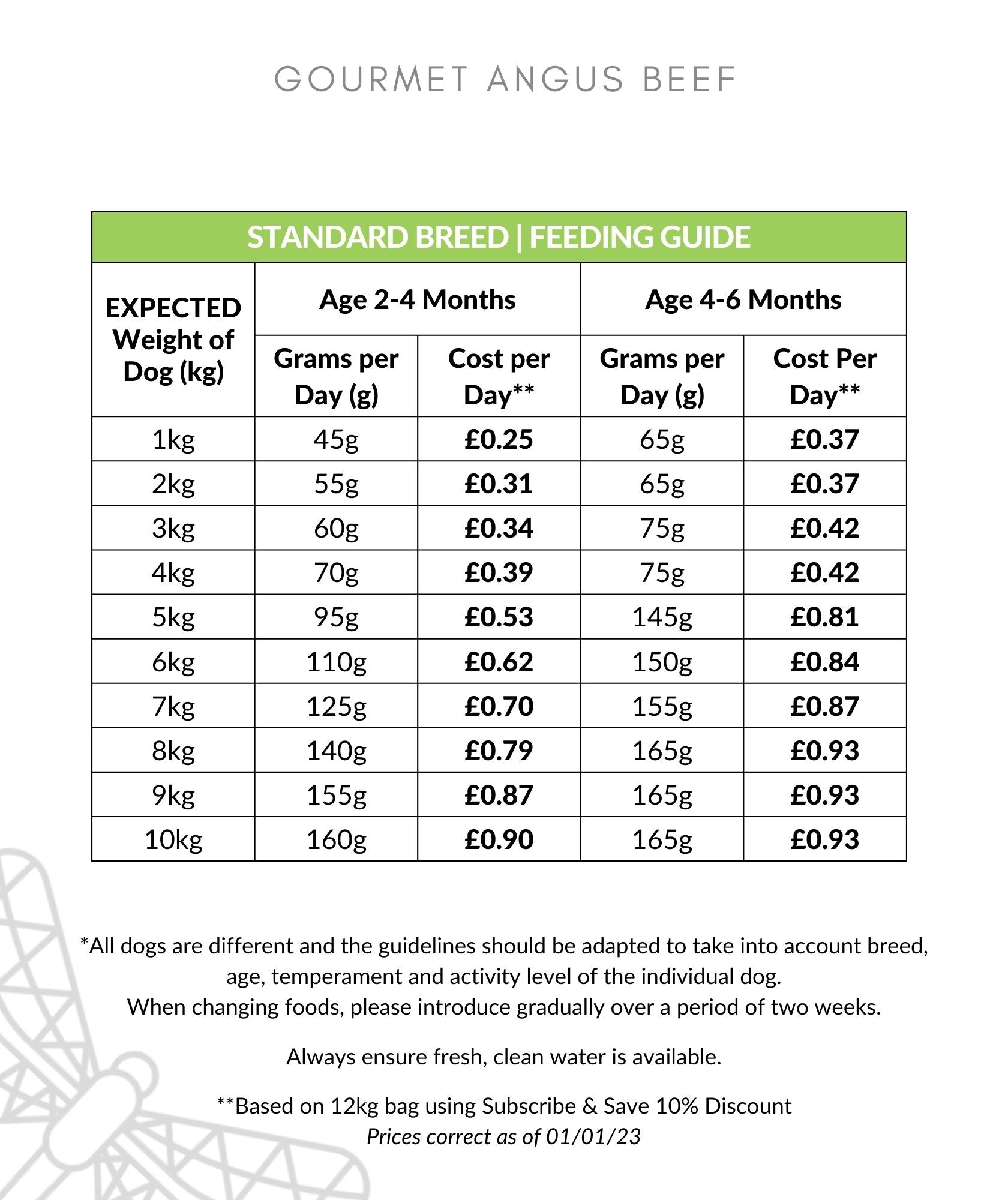 FEEDING GUIDELINES AS PER PHOTO