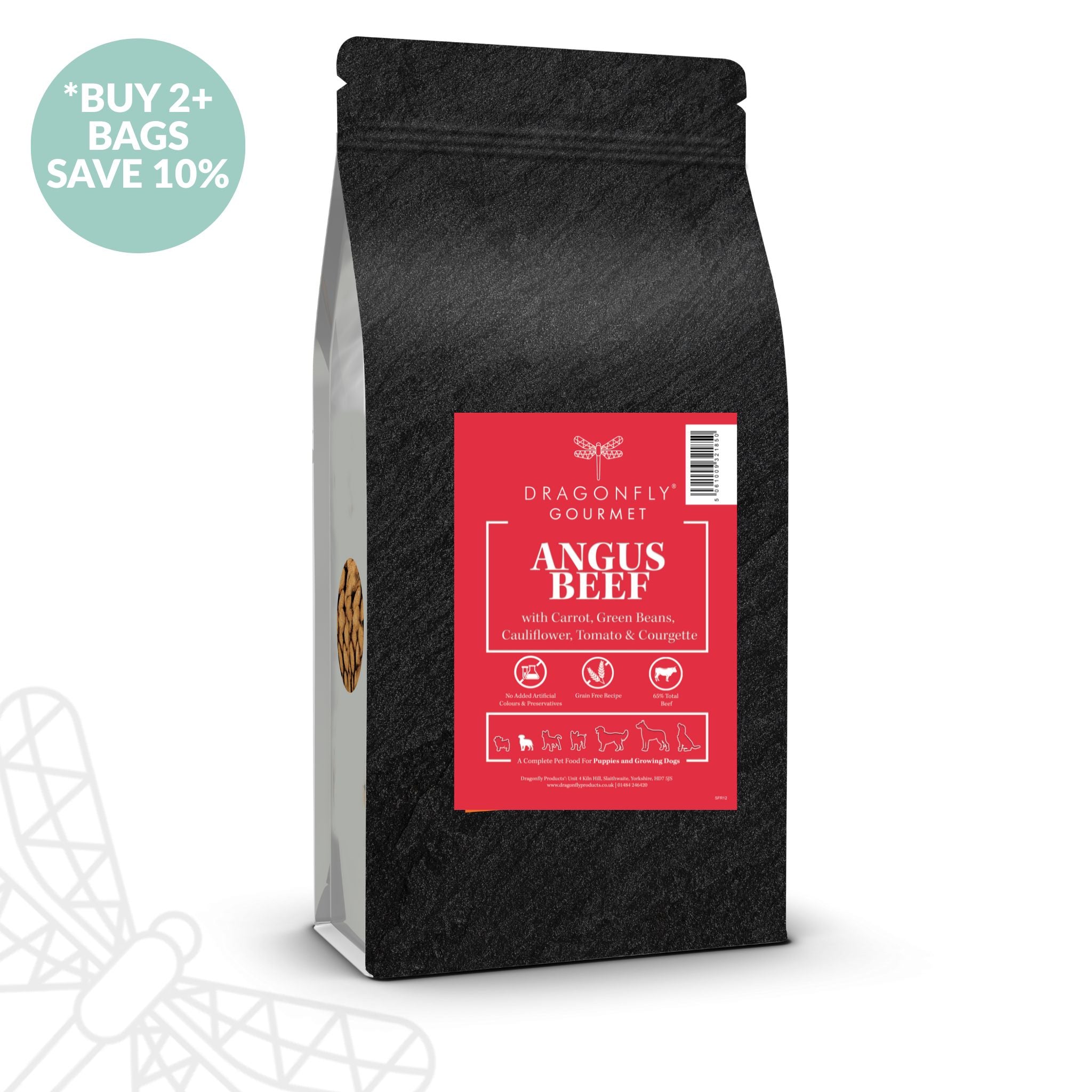 With 65% total beef — including a minimum of 35% freshly prepared Angus beef — it provides a rich source of essential amino acids, vitamins and minerals to support muscle development, immune health and everyday vitality. Angus beef is naturally tender and flavourful thanks to its fine marbling — so even fussy puppies love it.