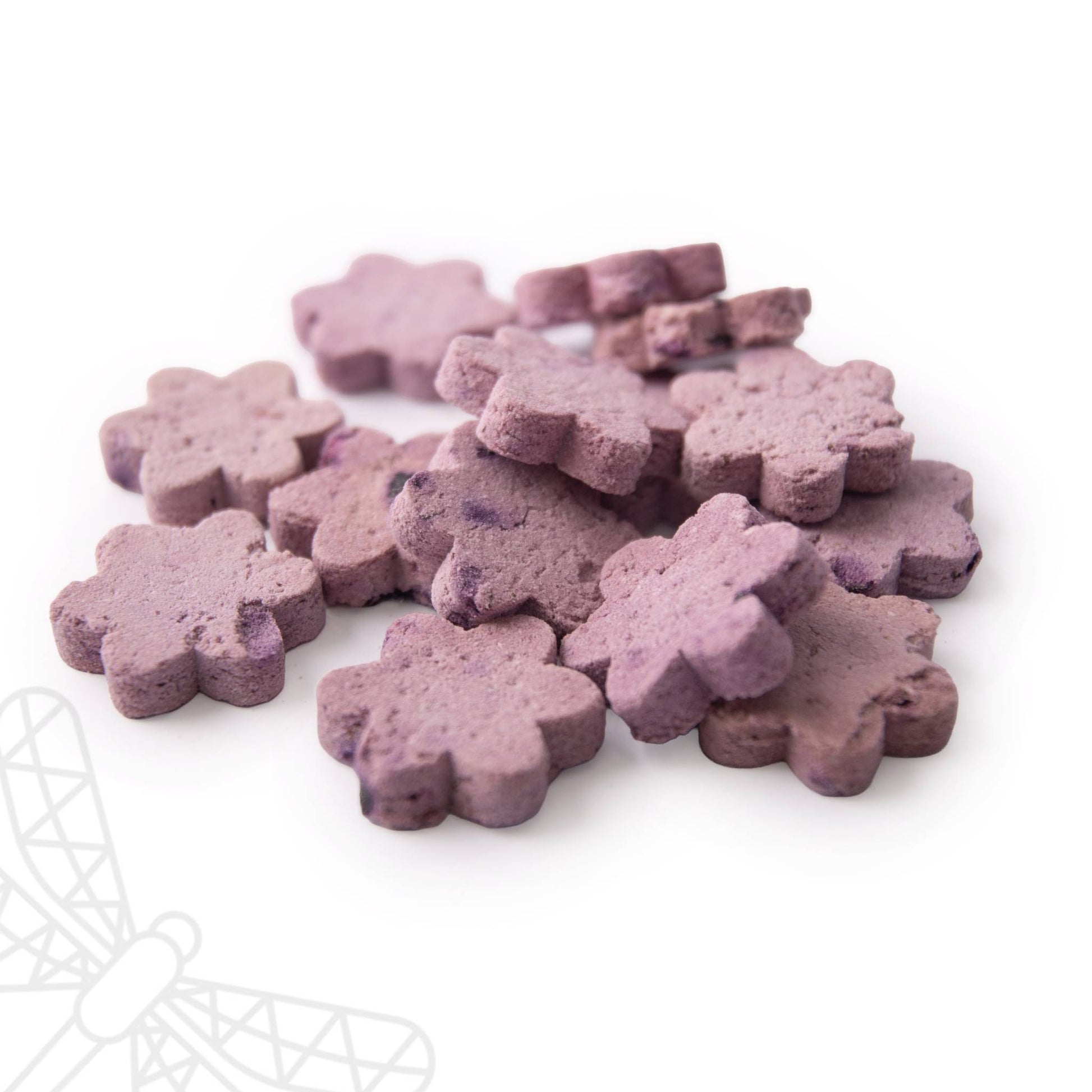 Composition: Gram flour, blueberries (33%), apples, kelp