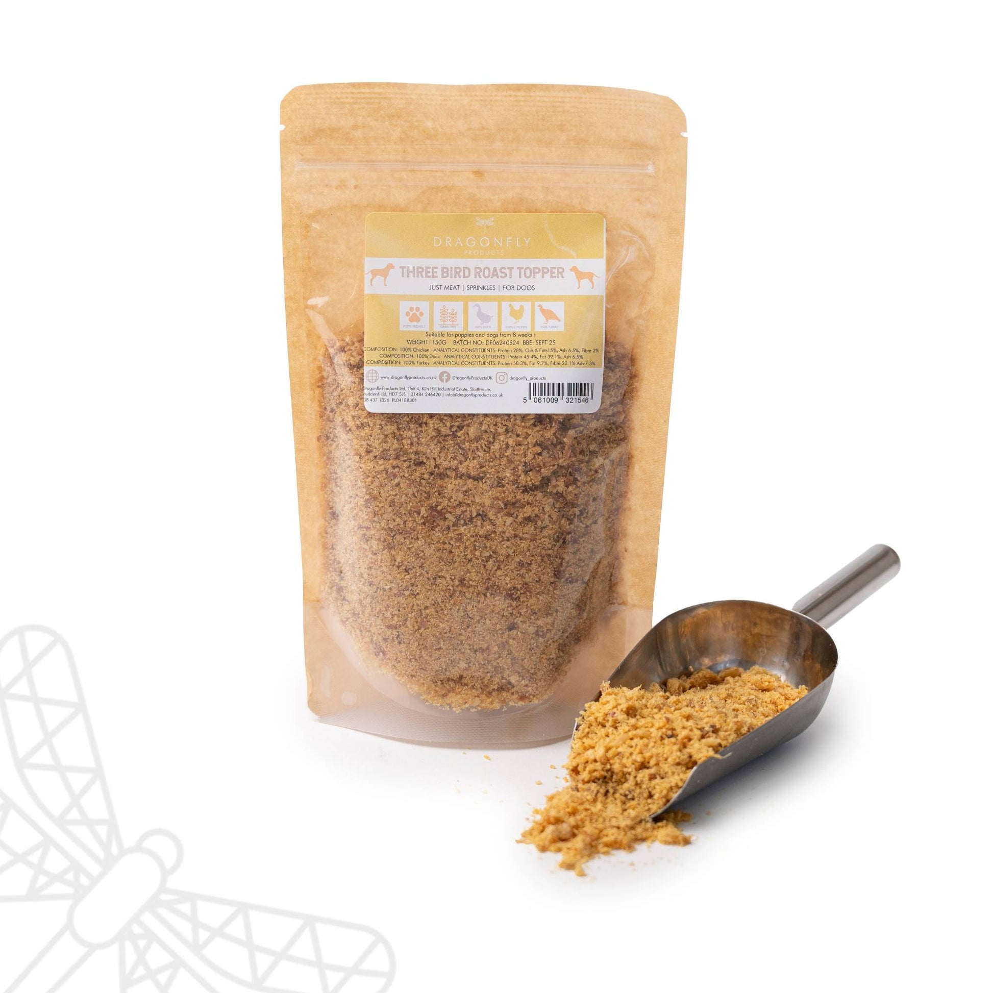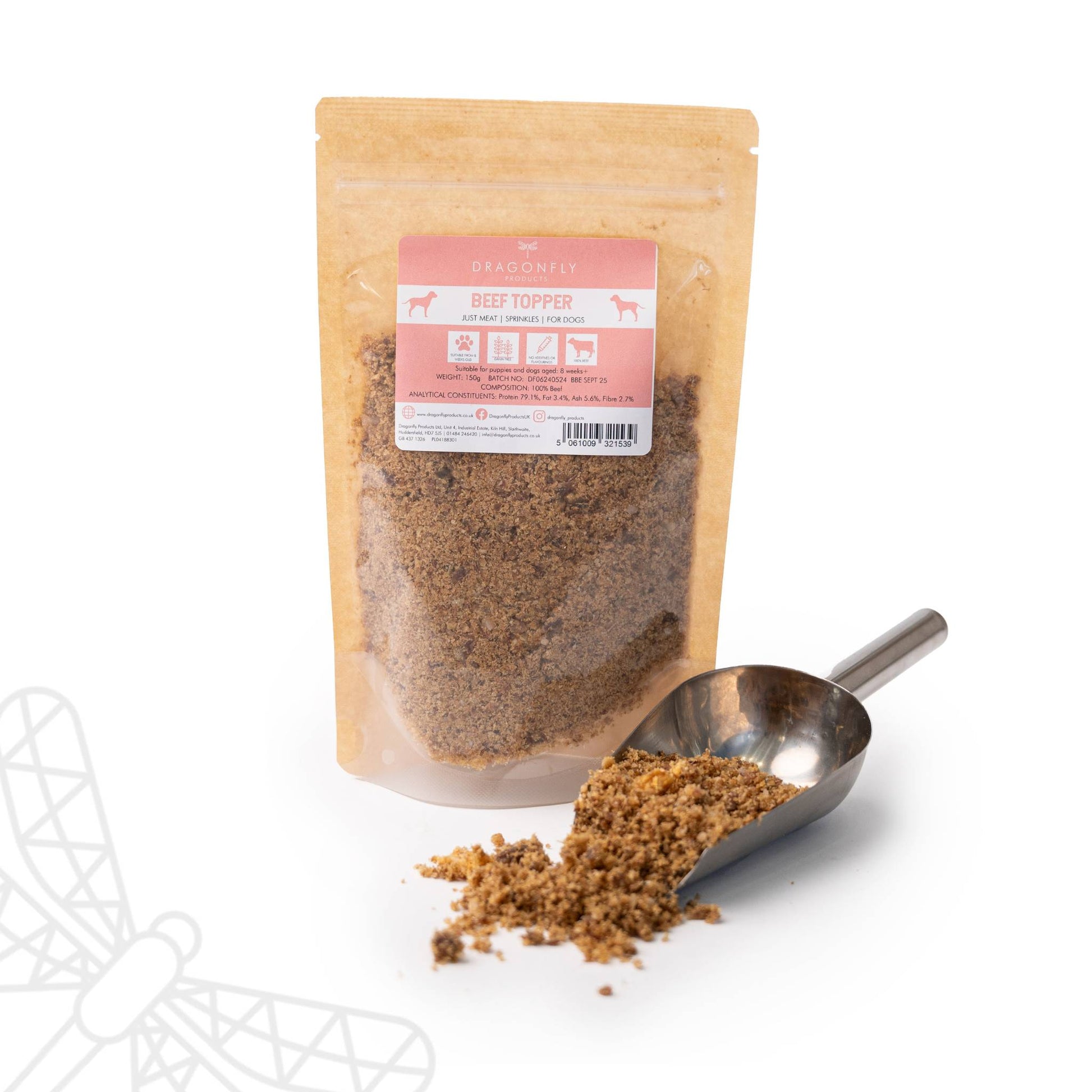 Simply add a sprinkle of our tasty Just Meat Topper Sprinkles to your dog's wet or dry food. There will be a clean bowl, even with the fussiest of eaters!