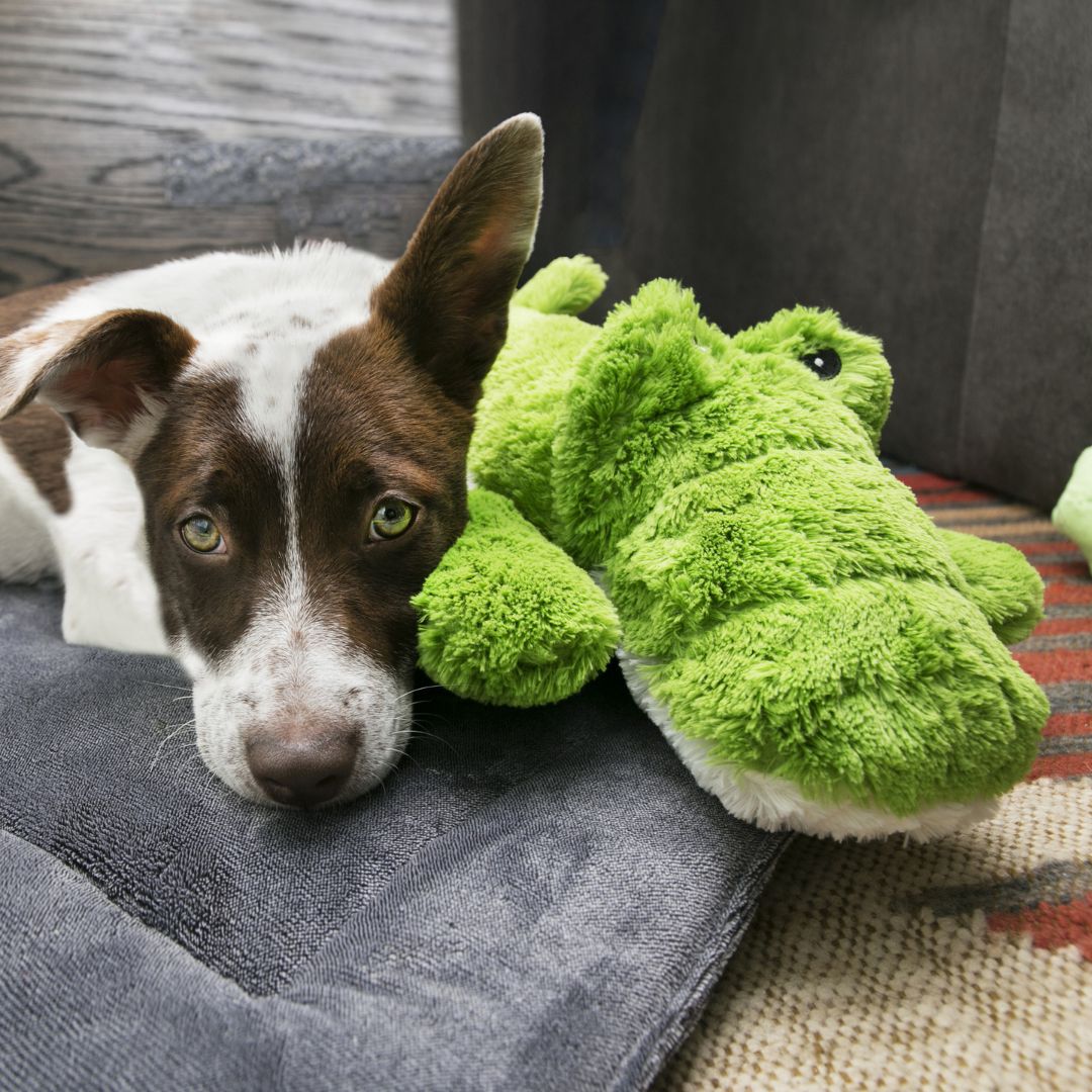 Always supervise your dog during play and regularly check your dog's toys. They should be removed and replaced if damaged or if parts become detached and could pose a choking hazard. Seek immediate veterinary attention if any material is ingested.