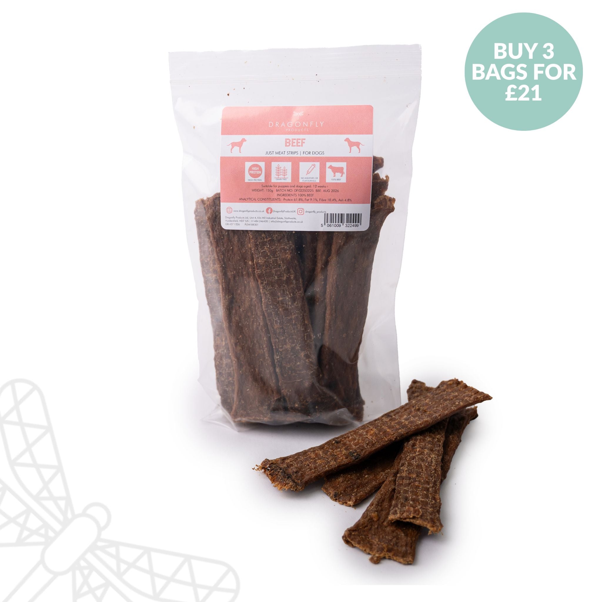 Our Just Meat Strips are made from 100% air-dried meat, gently dried to retain flavour and nutrients while keeping a soft, easy-to-handle texture.