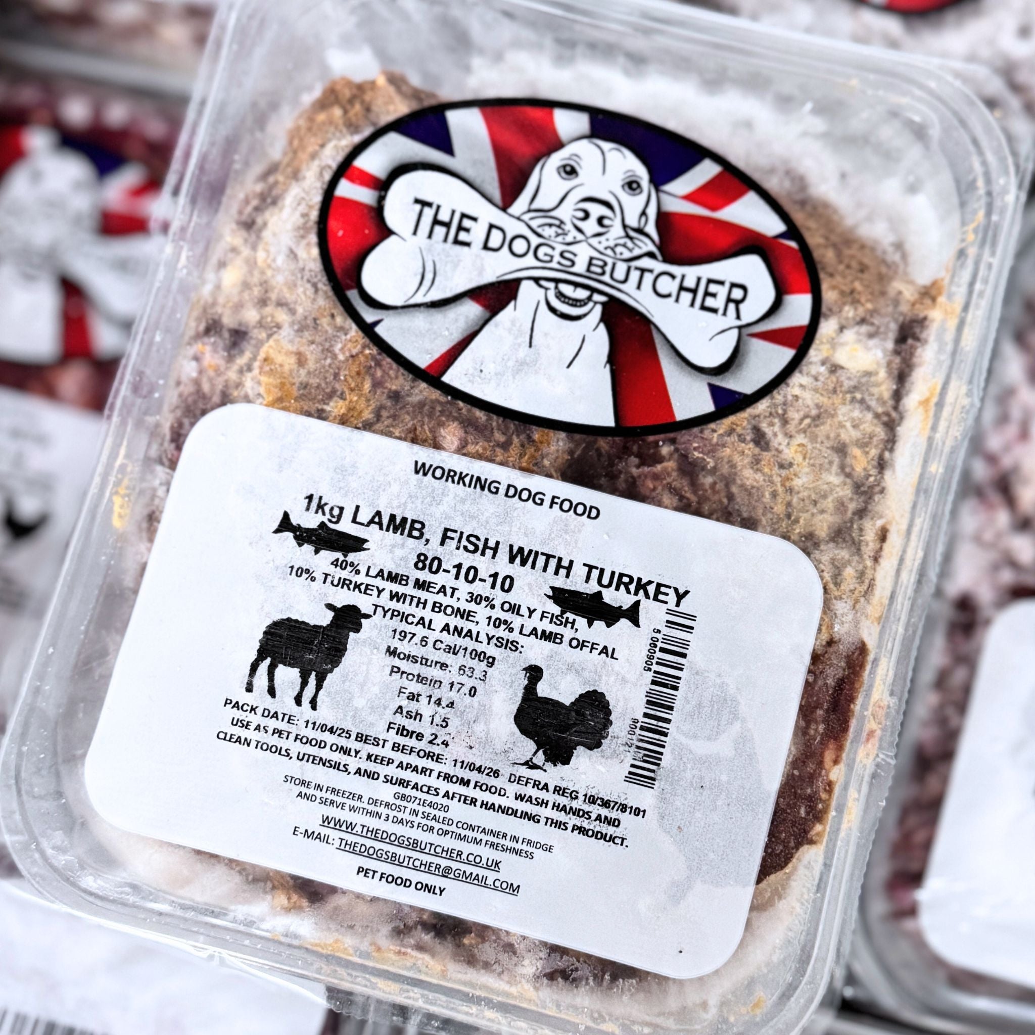 Ingredients:Â 30% whole oily fish, 4% lamb liver, 4% lamb spleen/kidney, 15% lamb lung, 15% lamb heart, 12% lamb tongue, 10% lamb trim, 5% turkey bone, 5% turkey meat